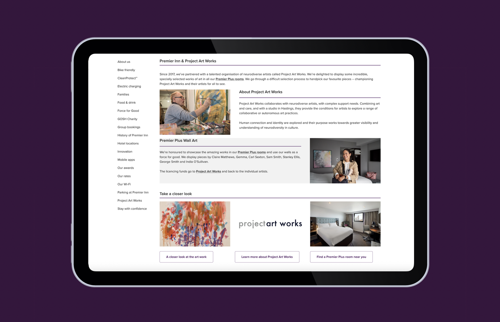 Translate a new CSR partnership with Project Art Works into a scalable, multi-channel programme that could clearly communicate the story of neurodiverse artists while delivering consistency across hotel, digital and marketing environments.
